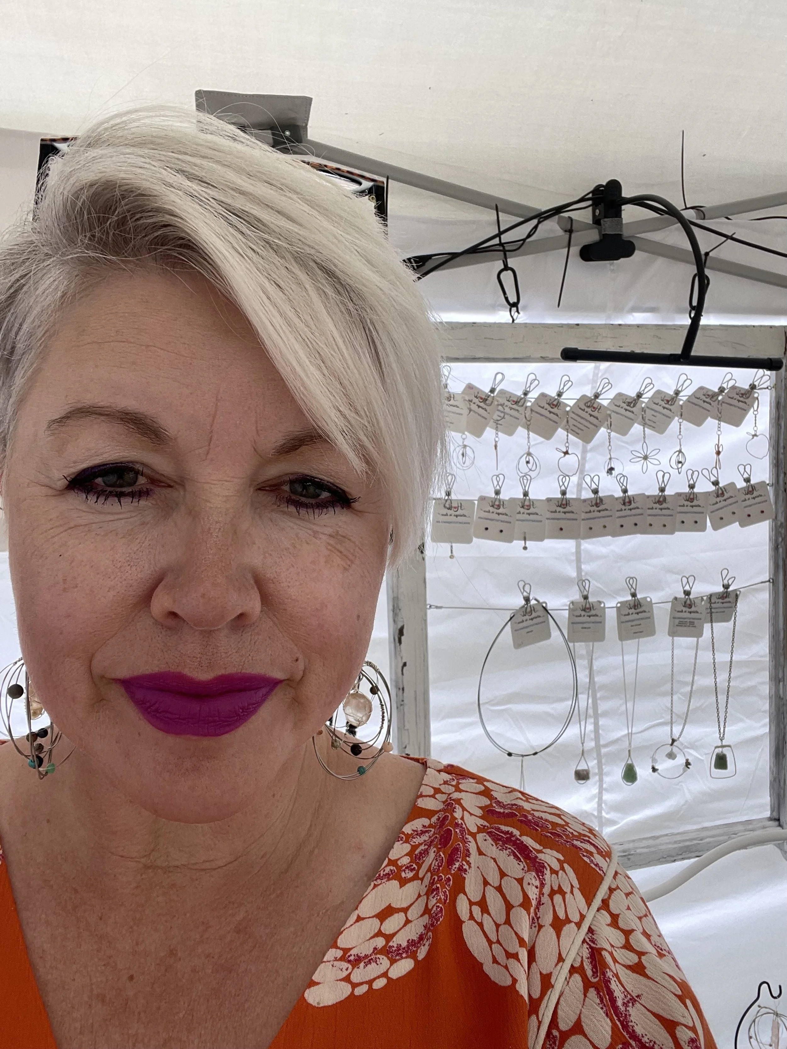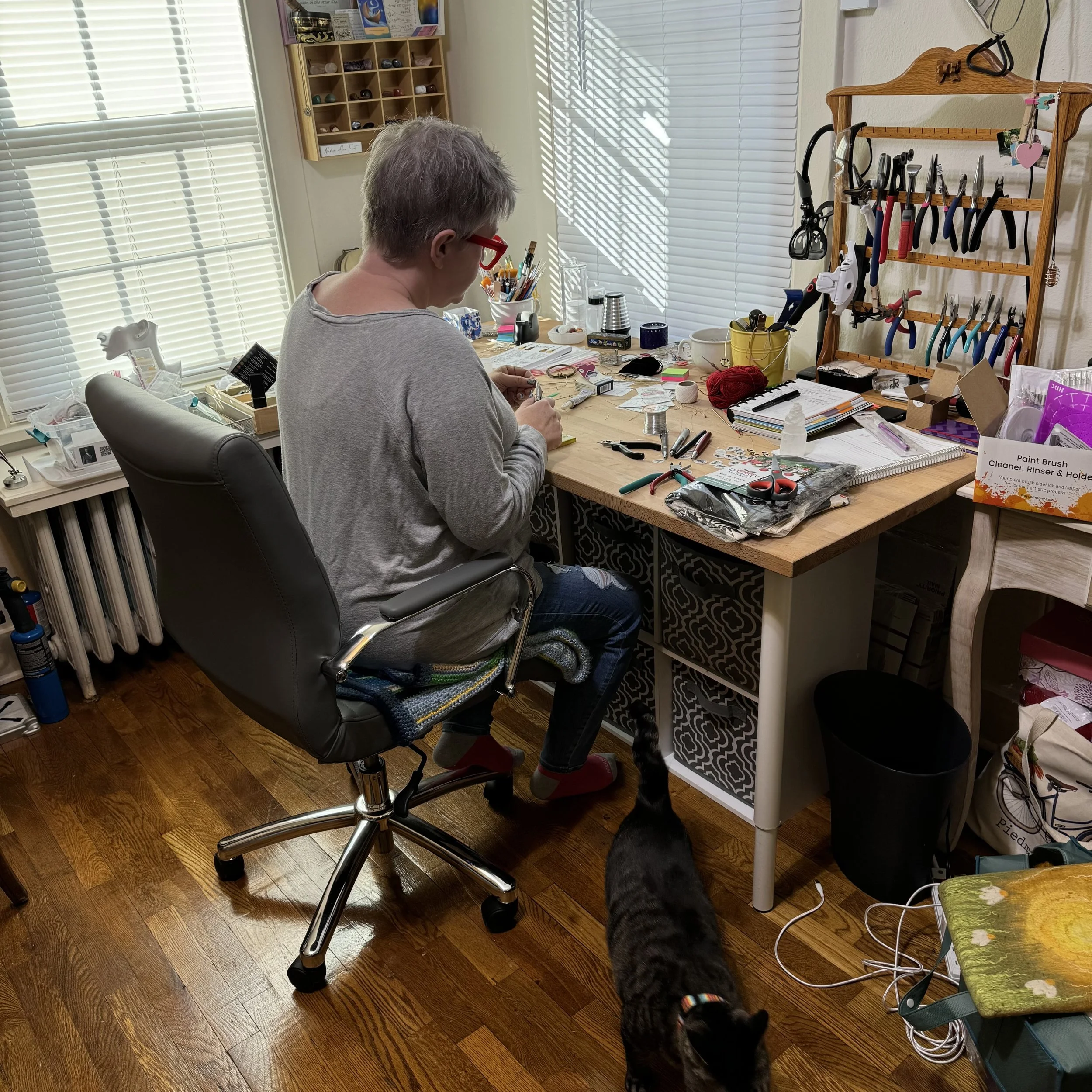 I find making guitar string art and jewelry, using natural stones, to be peaceful and meditative. I am constantly coming up with new designs, including my signature solar system collection. Finding ways to incorporate guitar strings into other types of creative expression, like encaustic painting and fiber arts, has become my passion.